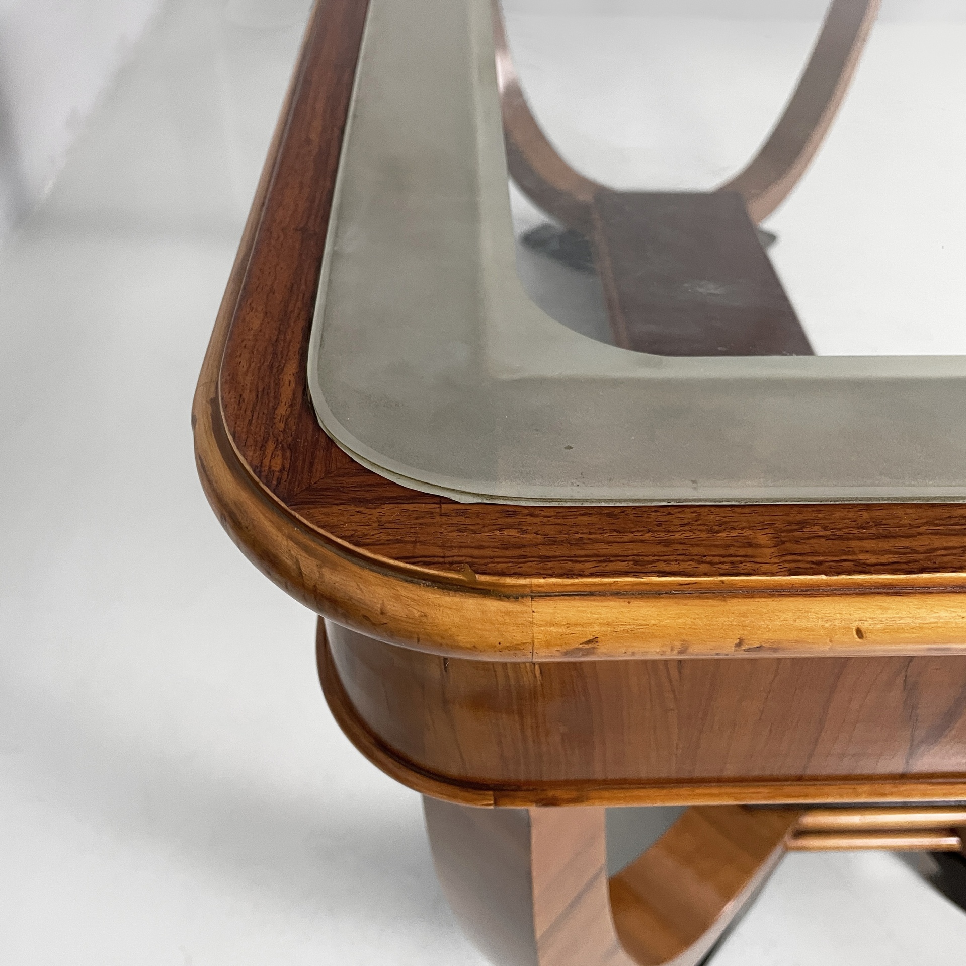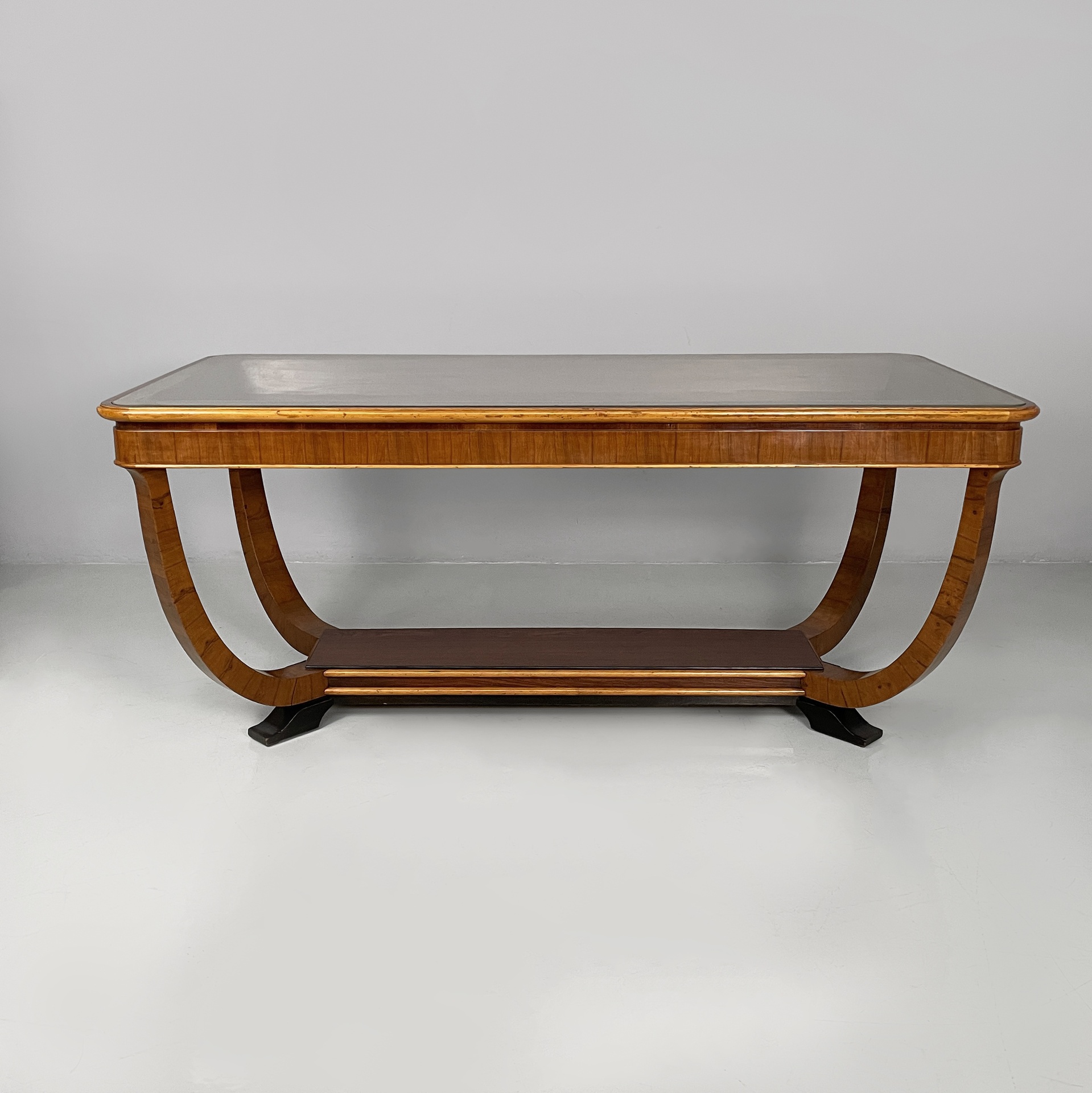 Tavolo da pranzo in vetro e legno, 1930 ca.