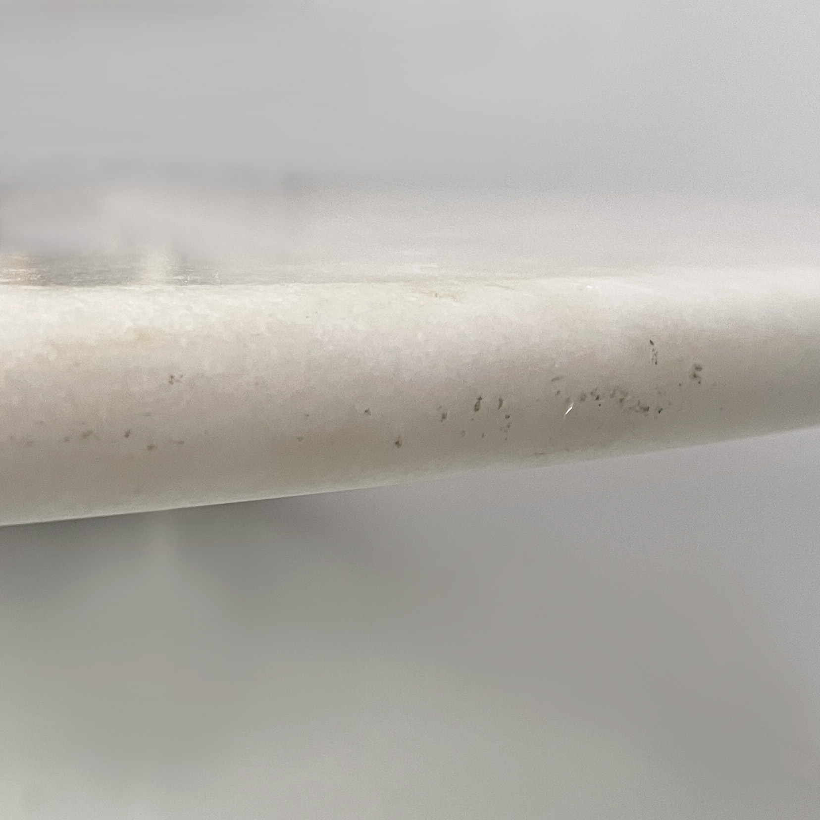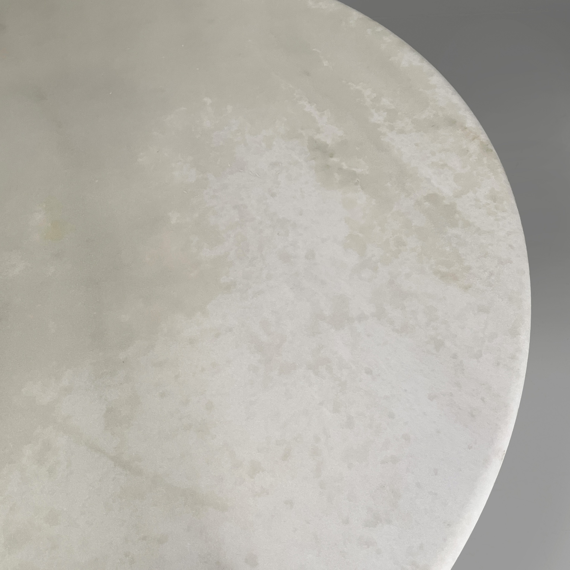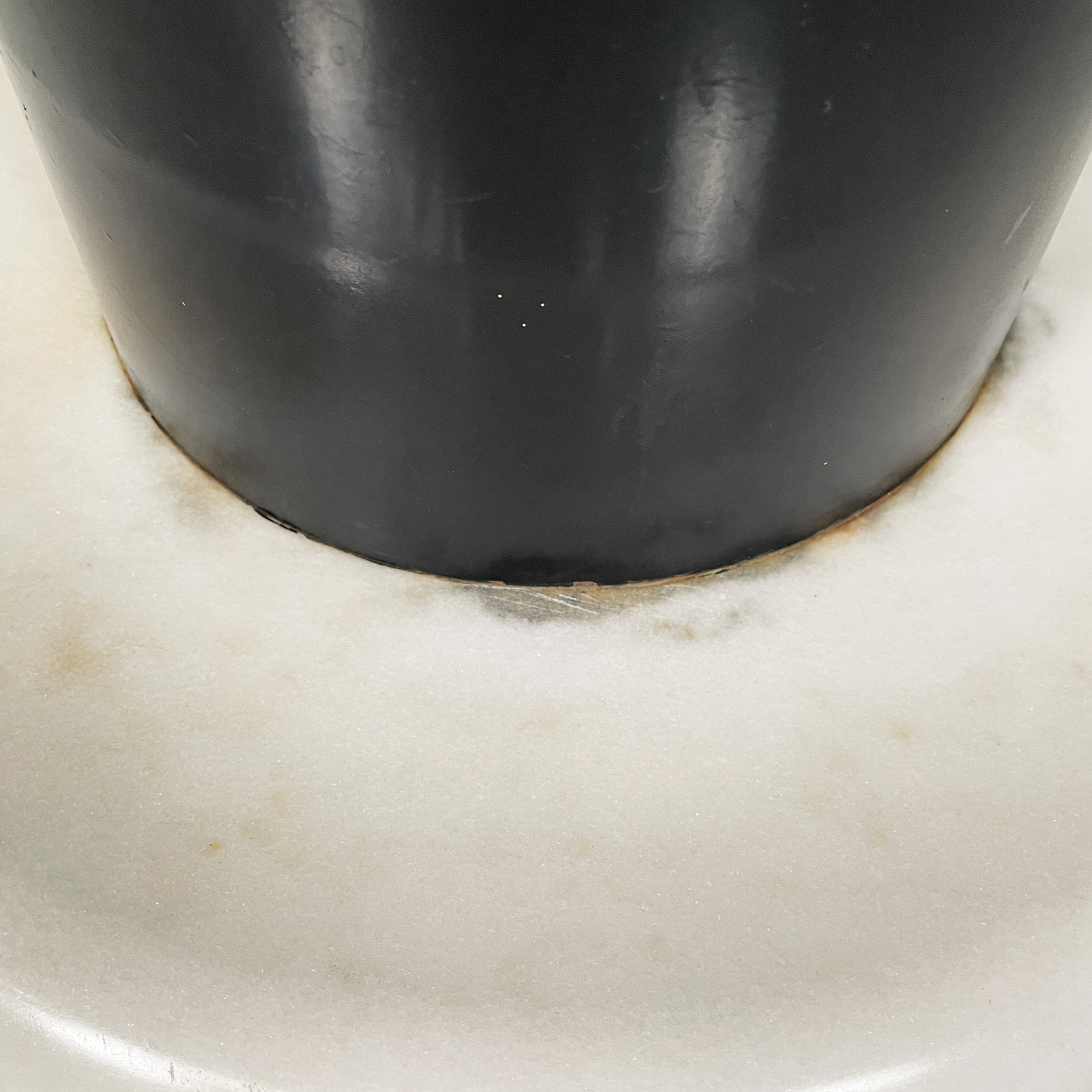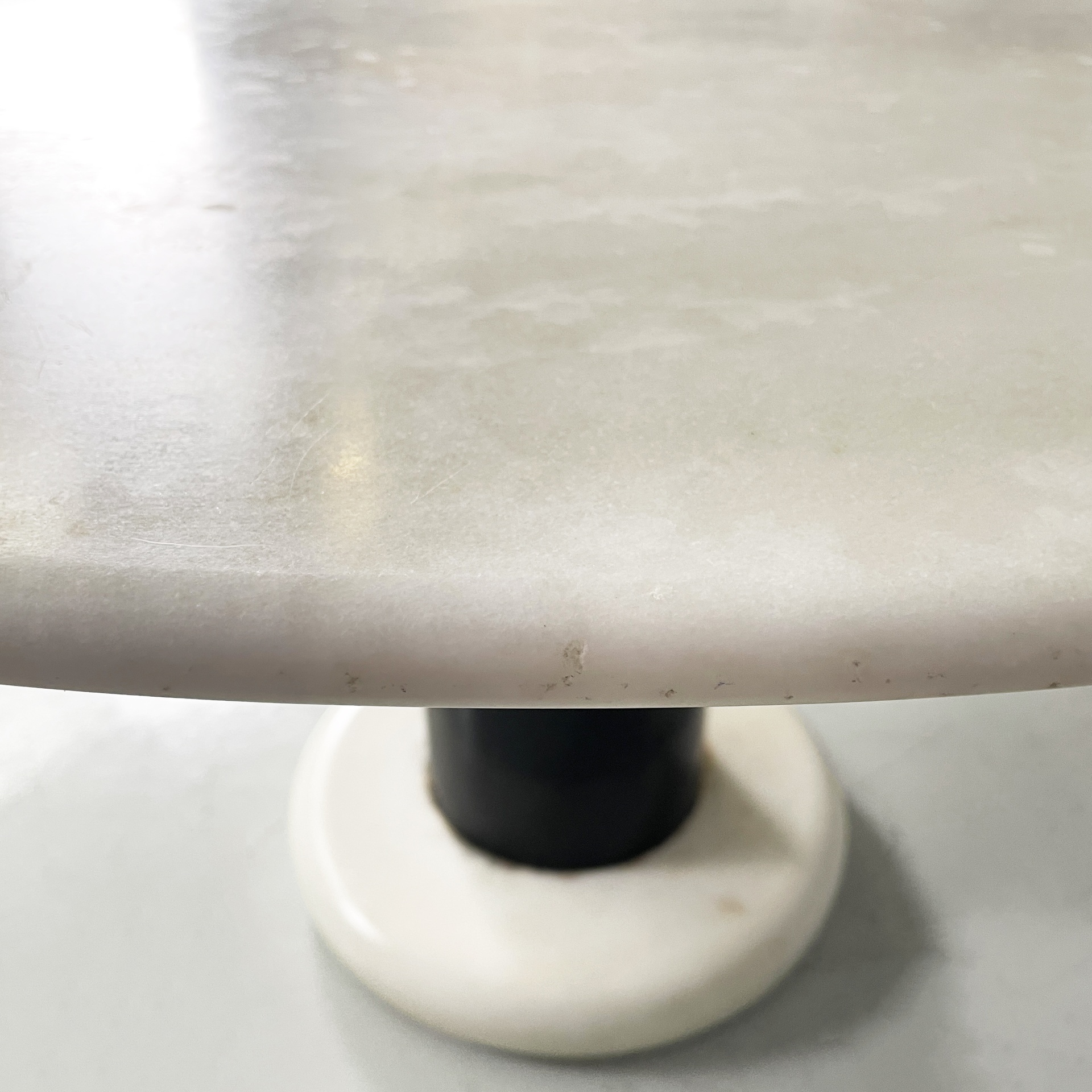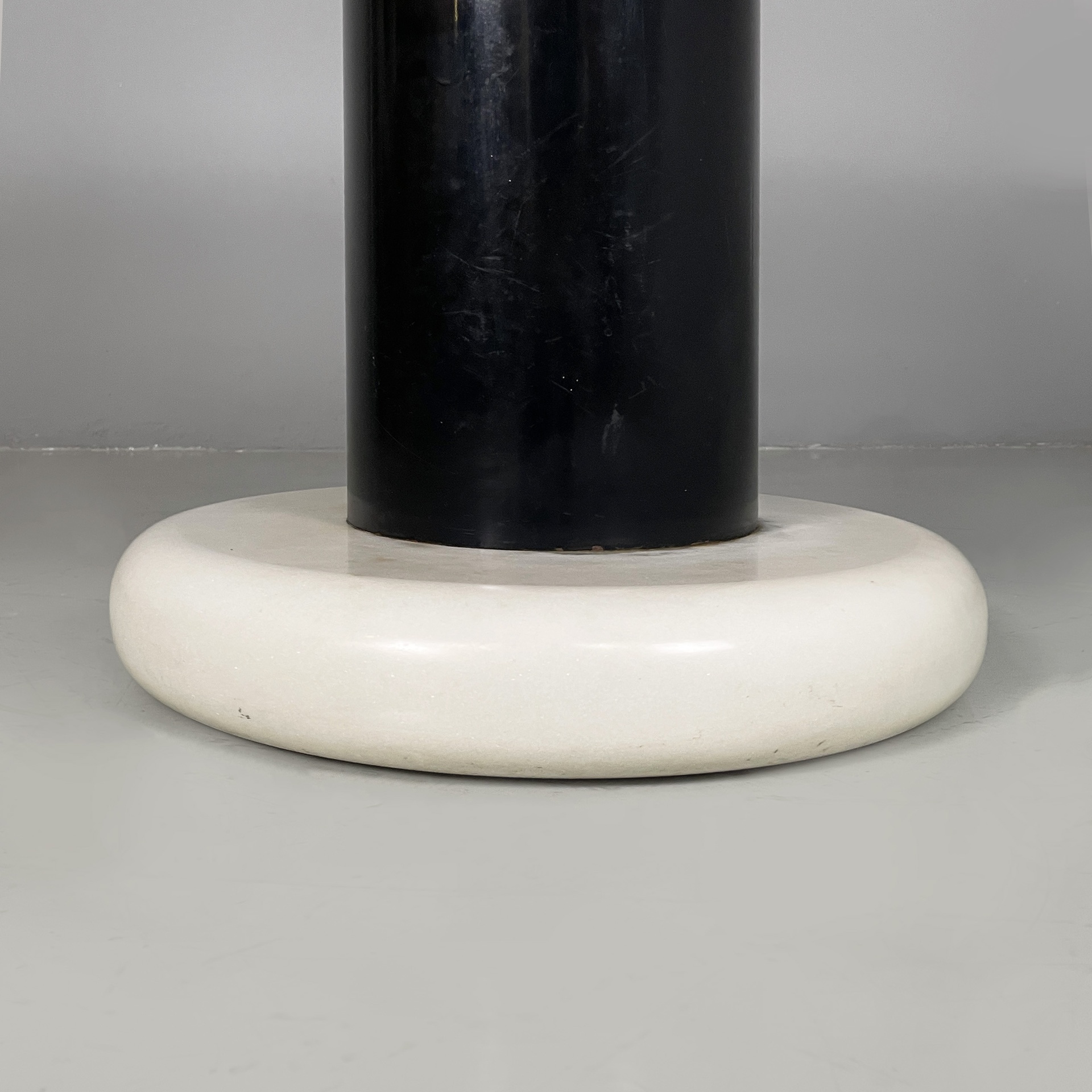 Tavolo da pranzo mod. Loto Rosso con piano tondo in marmo bianco. la struttura centrale cilindrica p in metallo verniciato nero. Base tonda in marmo bianco.