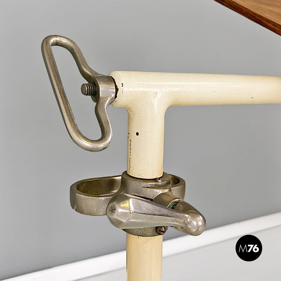 Tavolo da tecnigrafo in legno e ferro bianco, 1960 ca.