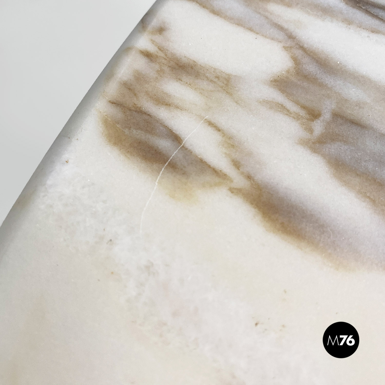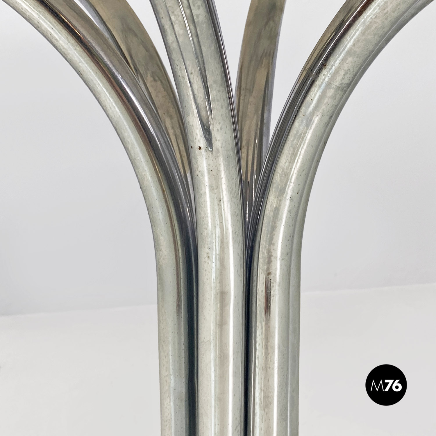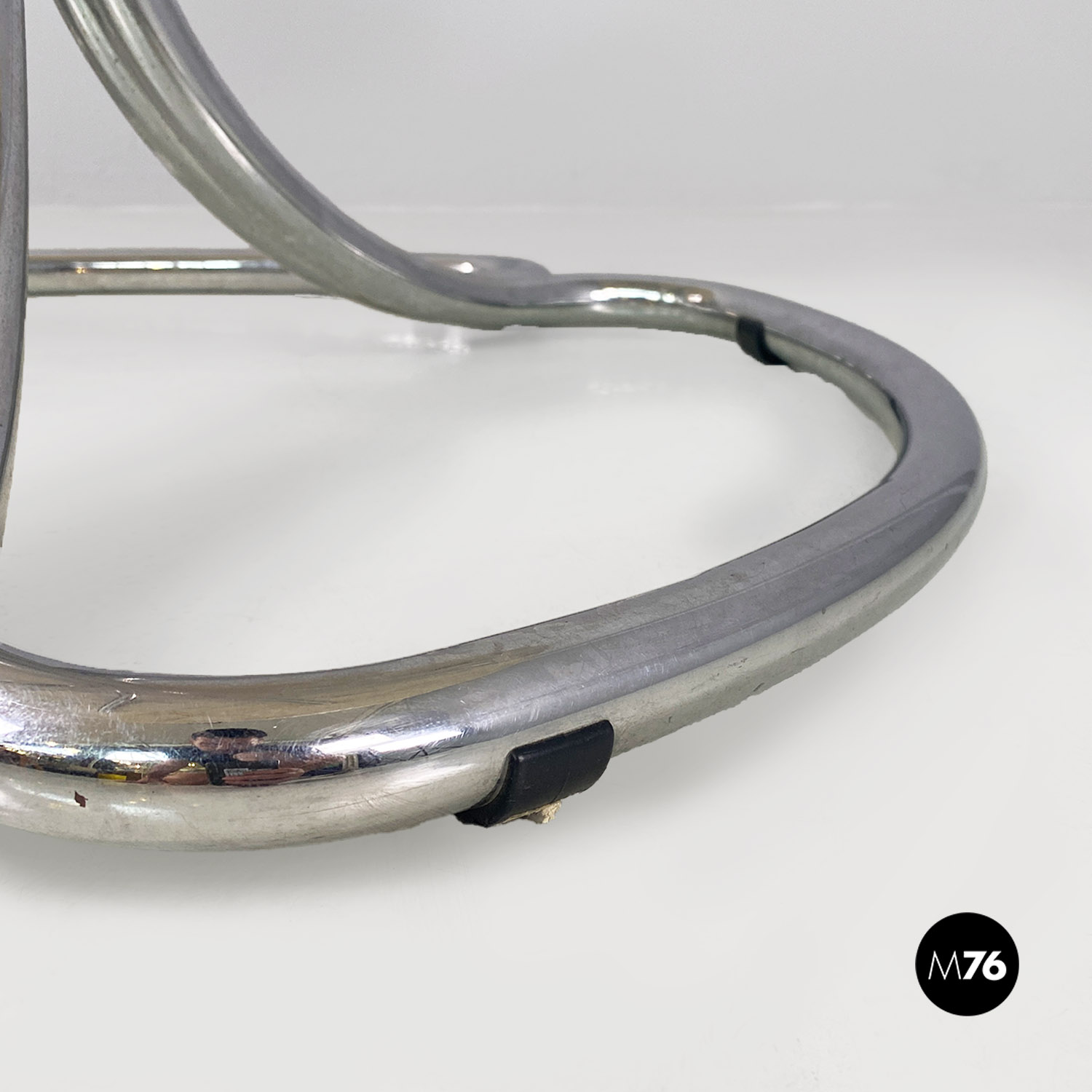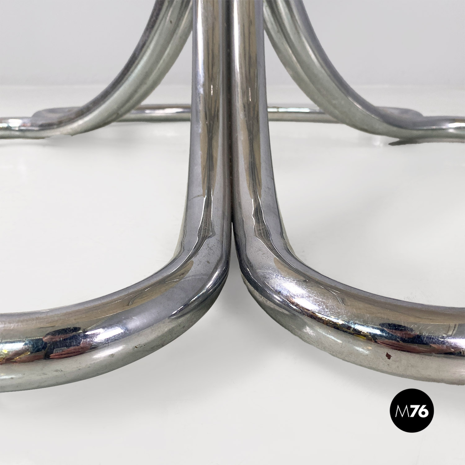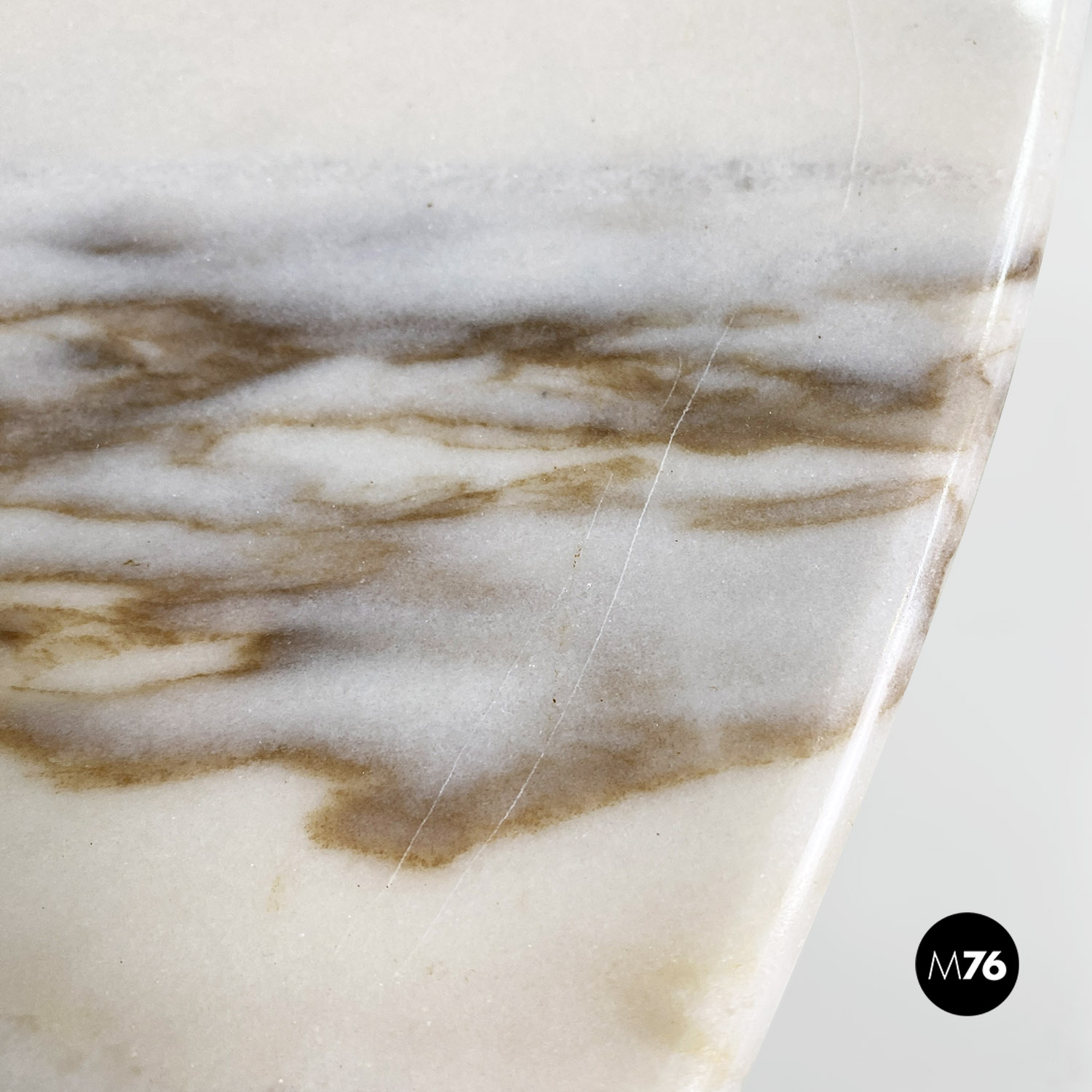 Tavolo da pranzo con piano in marmo rosa del Portogallo, con venature molto particolari e struttura snodata in acciaio cromato.
