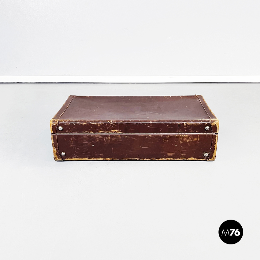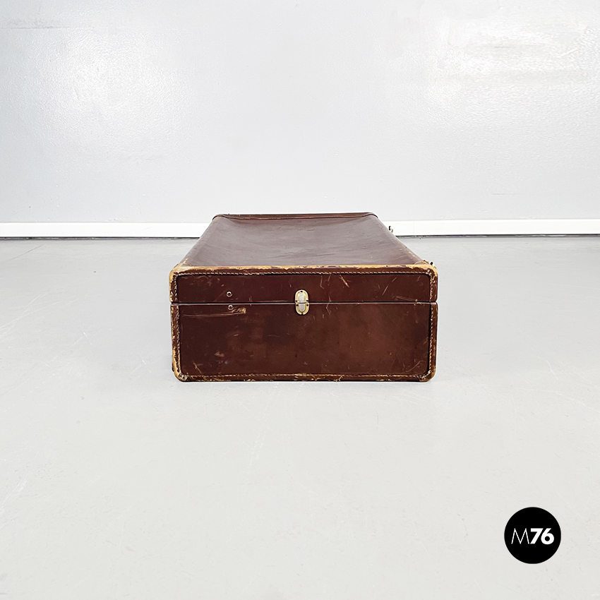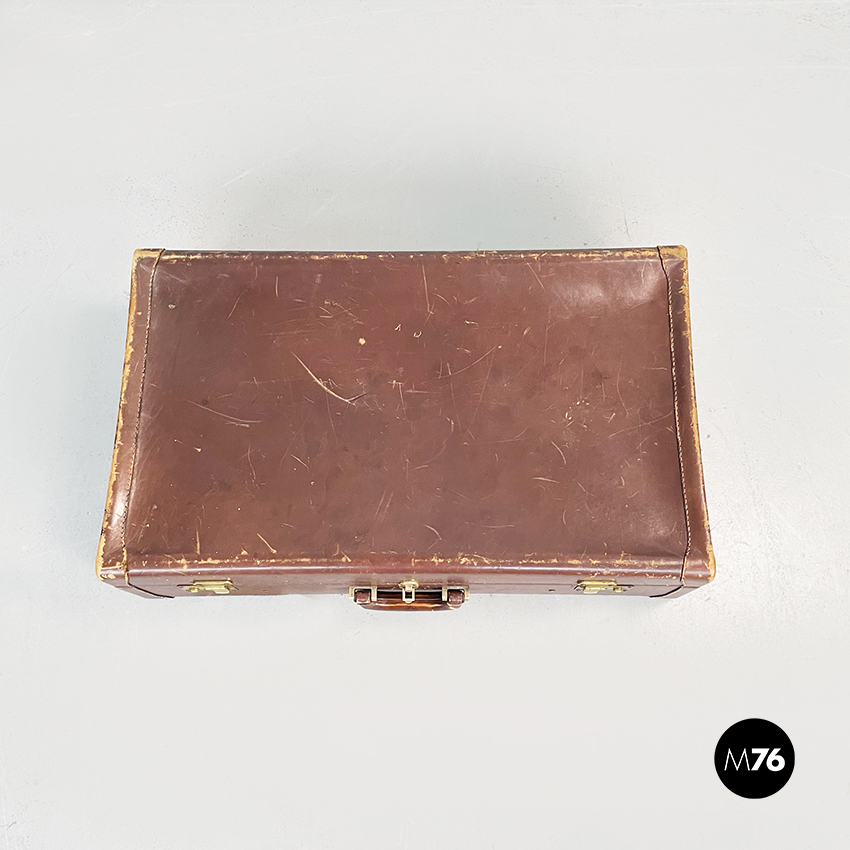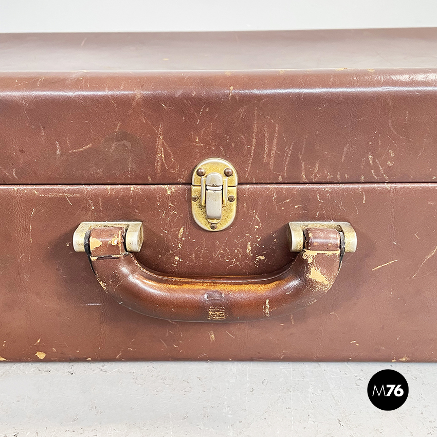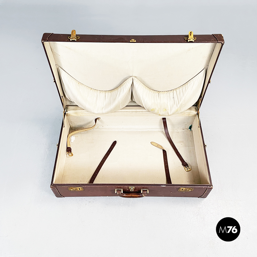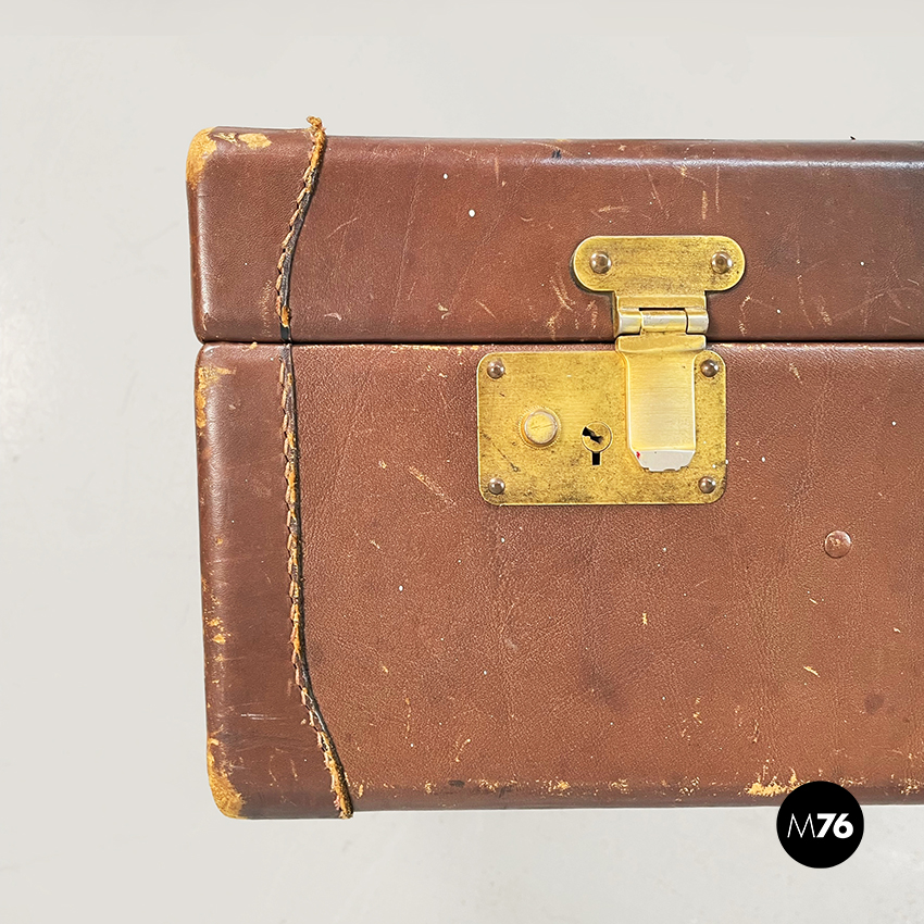 Valigia in pelle marrone e ottone, 1970 ca.
