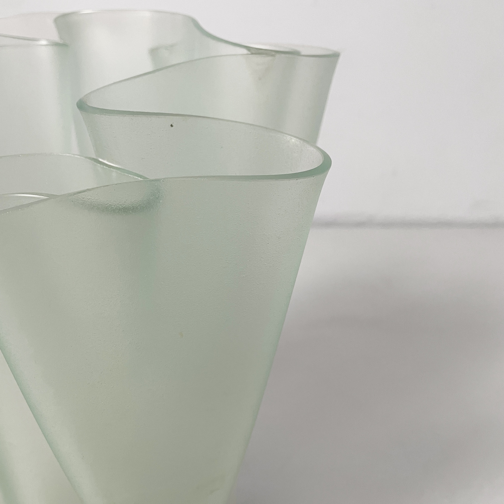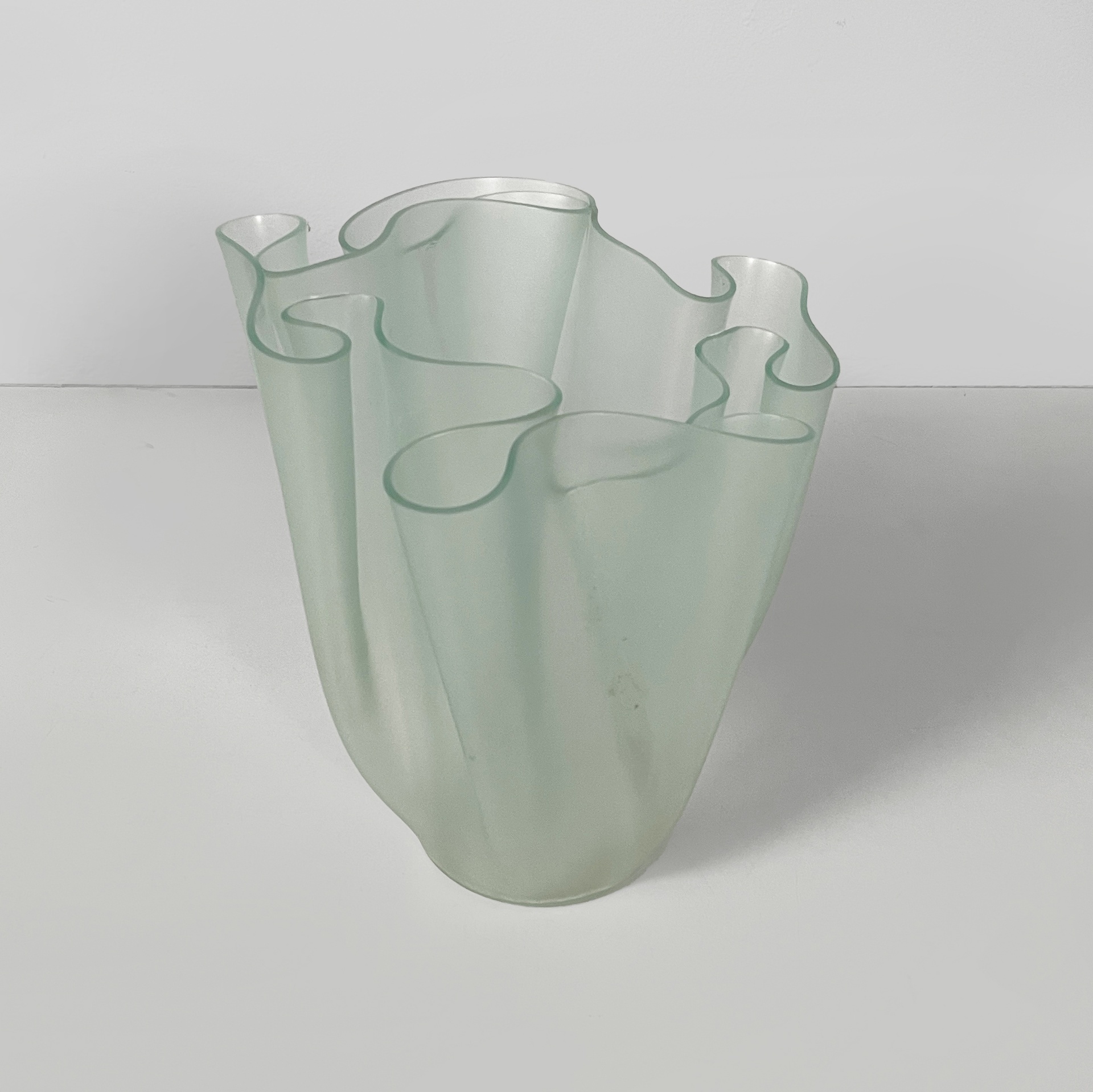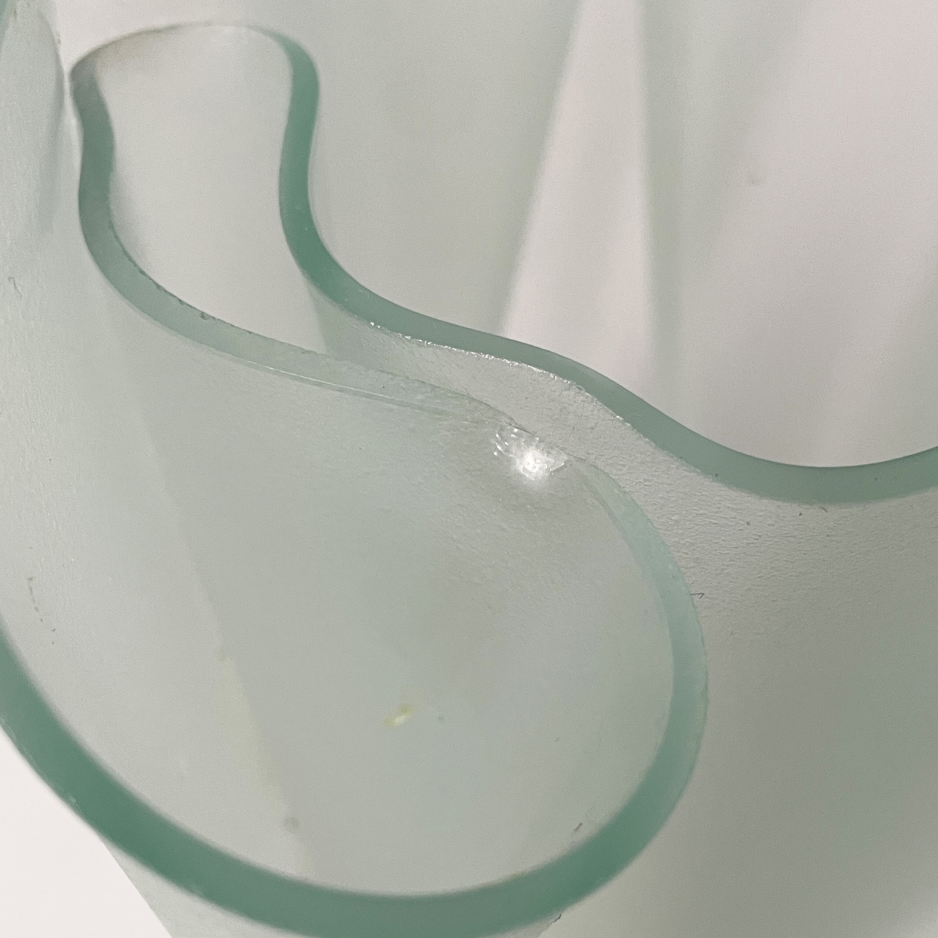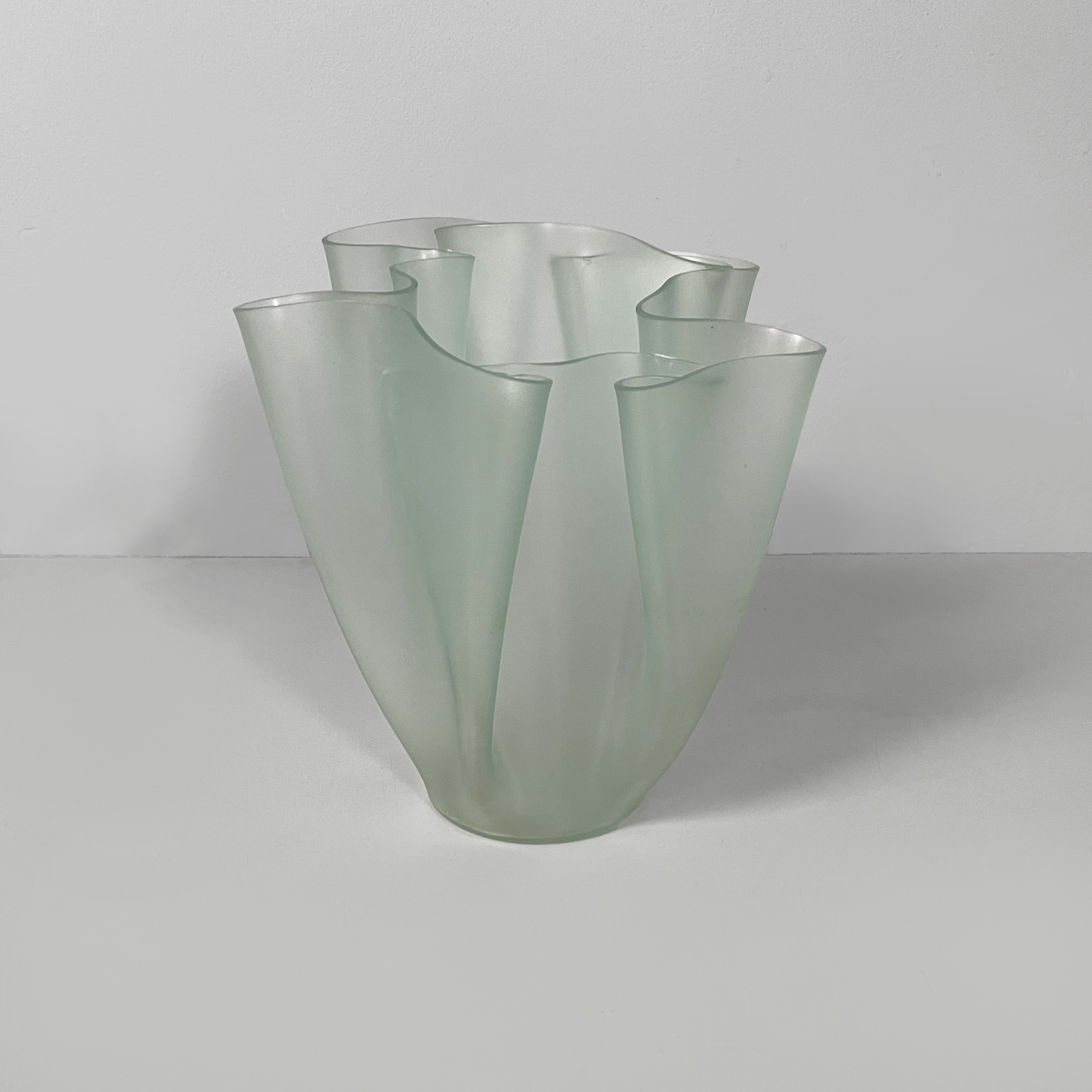 Vaso modello Cartoccio interamente in vetro satinato. La forma è irregolare presenta pieghe e forme tondeggianti.