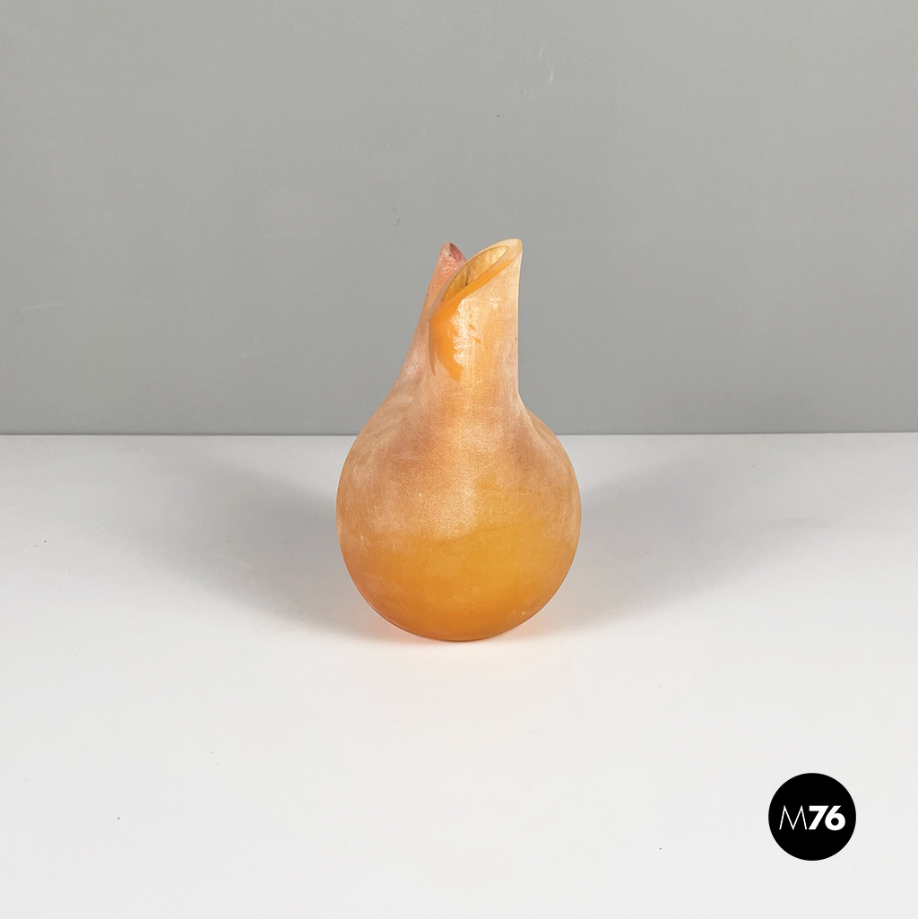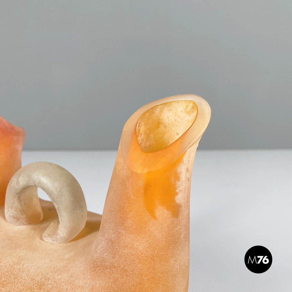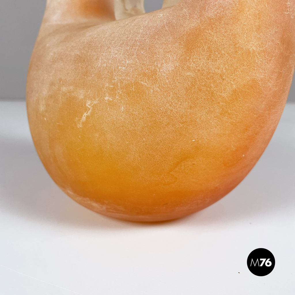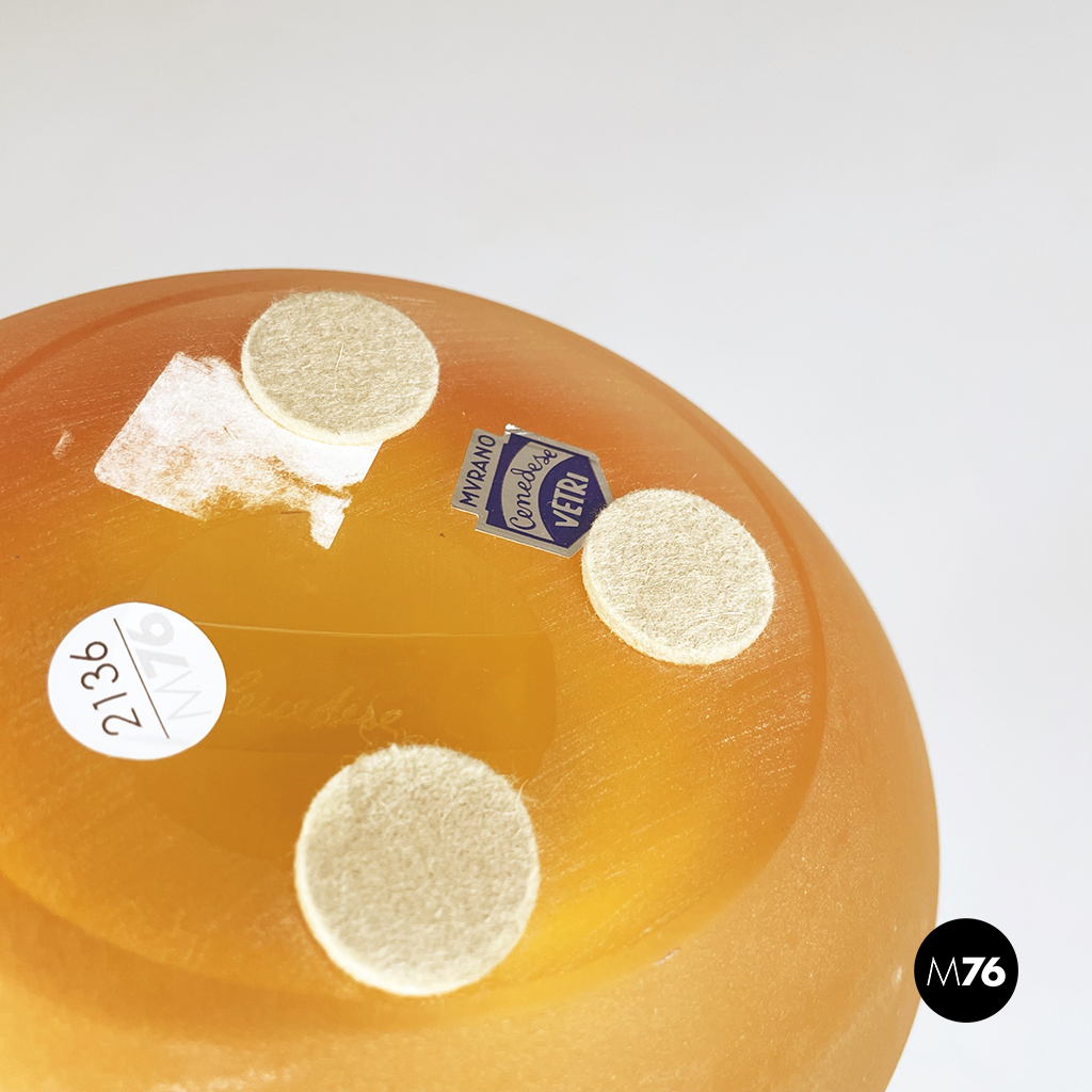 Vaso della serie Scavo, in vetro di murano color arancione, realizzato con una tecnica che dona un’aria anticata al vetro.