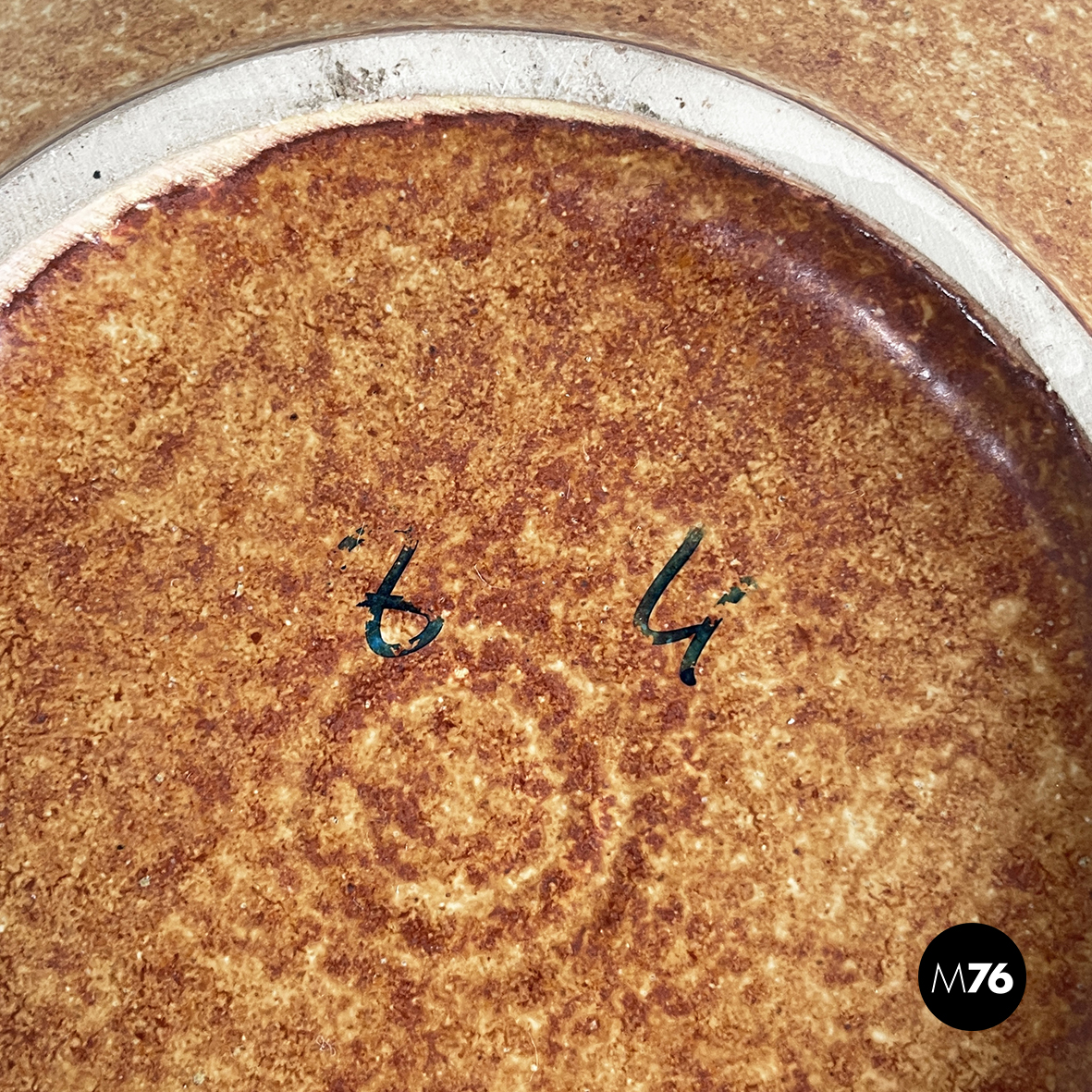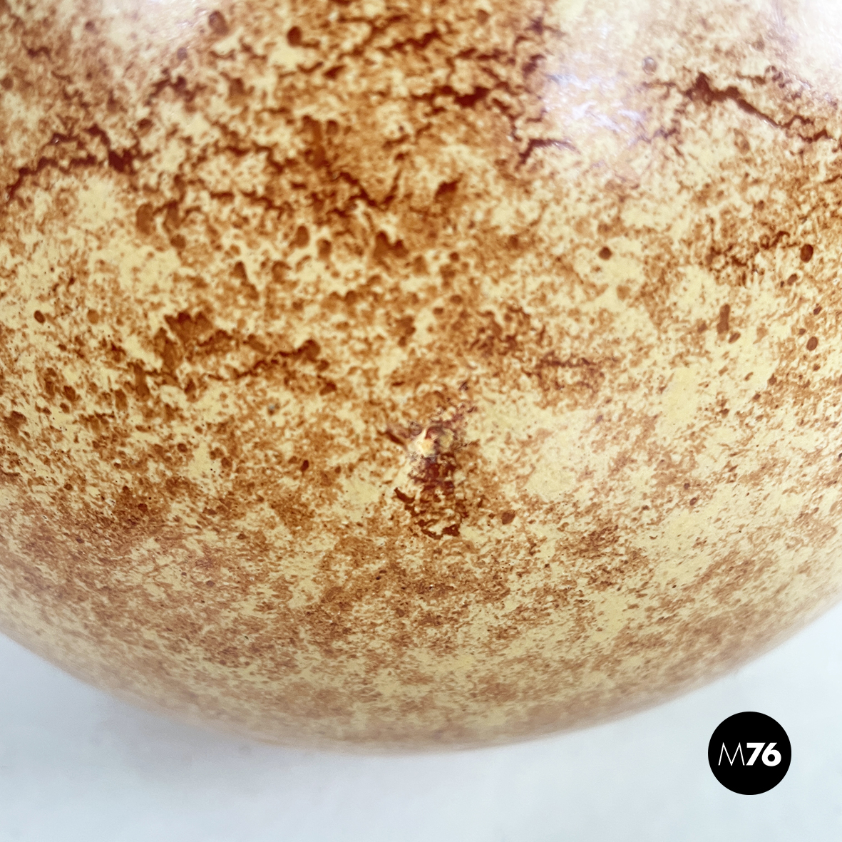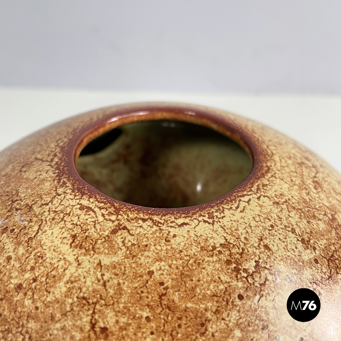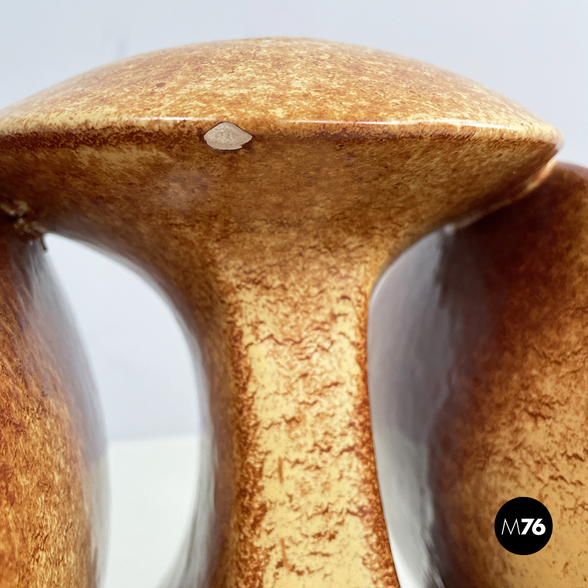 Vaso scultoreo in ceramica dipinta tra i toni del marrone e del beige. Il vaso è composto da 4 forme tonde, le quali creano spazi tra le forme organiche. Nella parte superiore presenta il foro tondo.