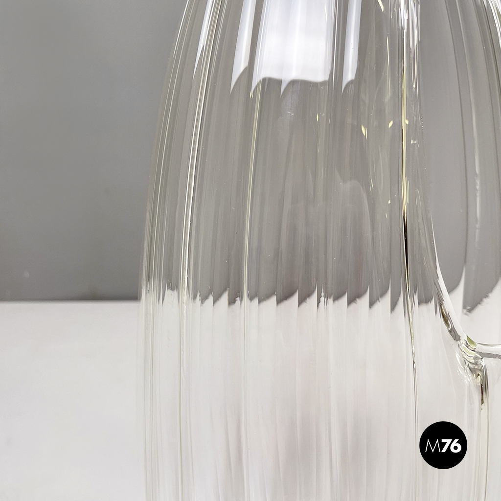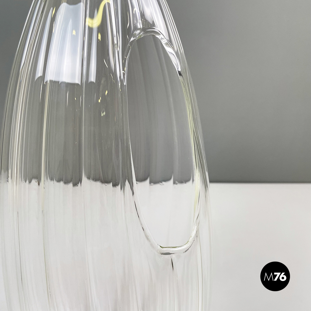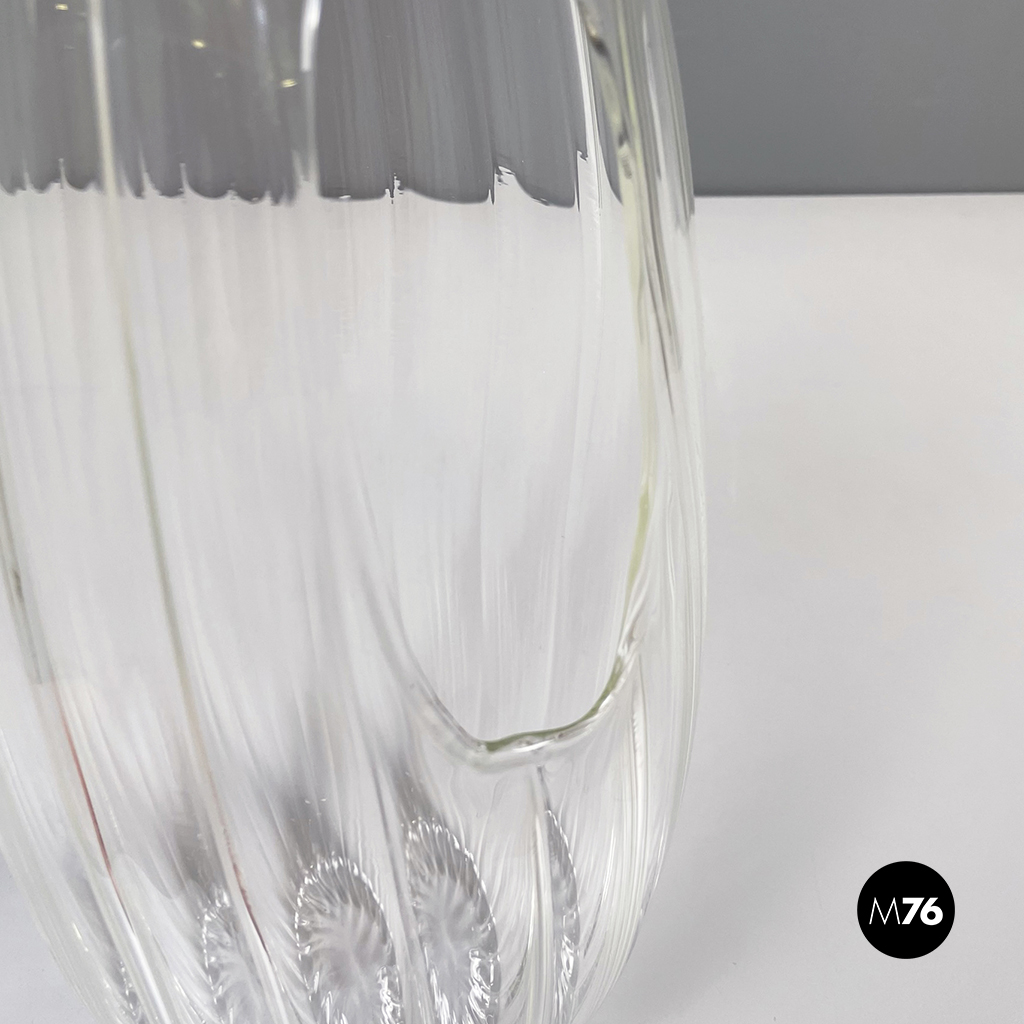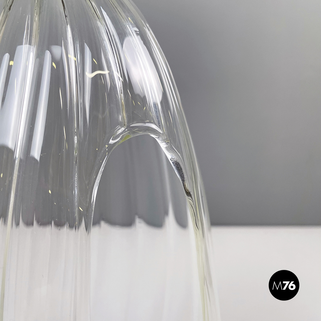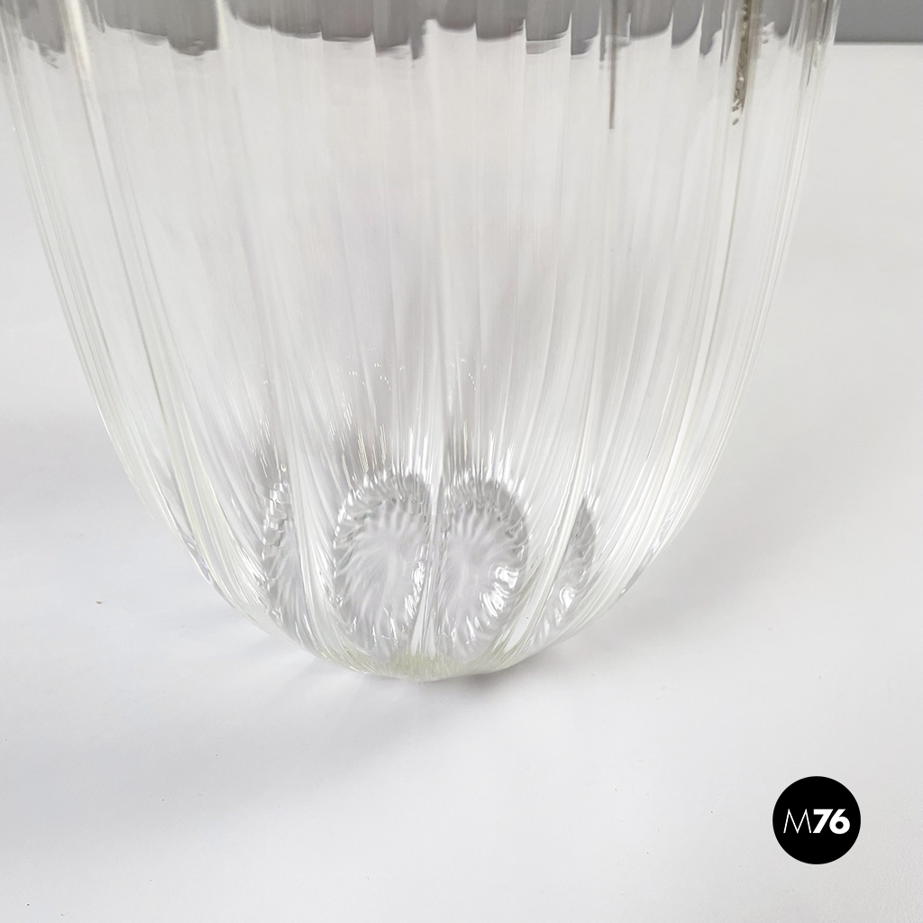 Vaso a base tonda in vetro finemente lavorato a mano. La struttura ovale ricorda la forma di un seme. Il vaso presenta il foro sul lato.