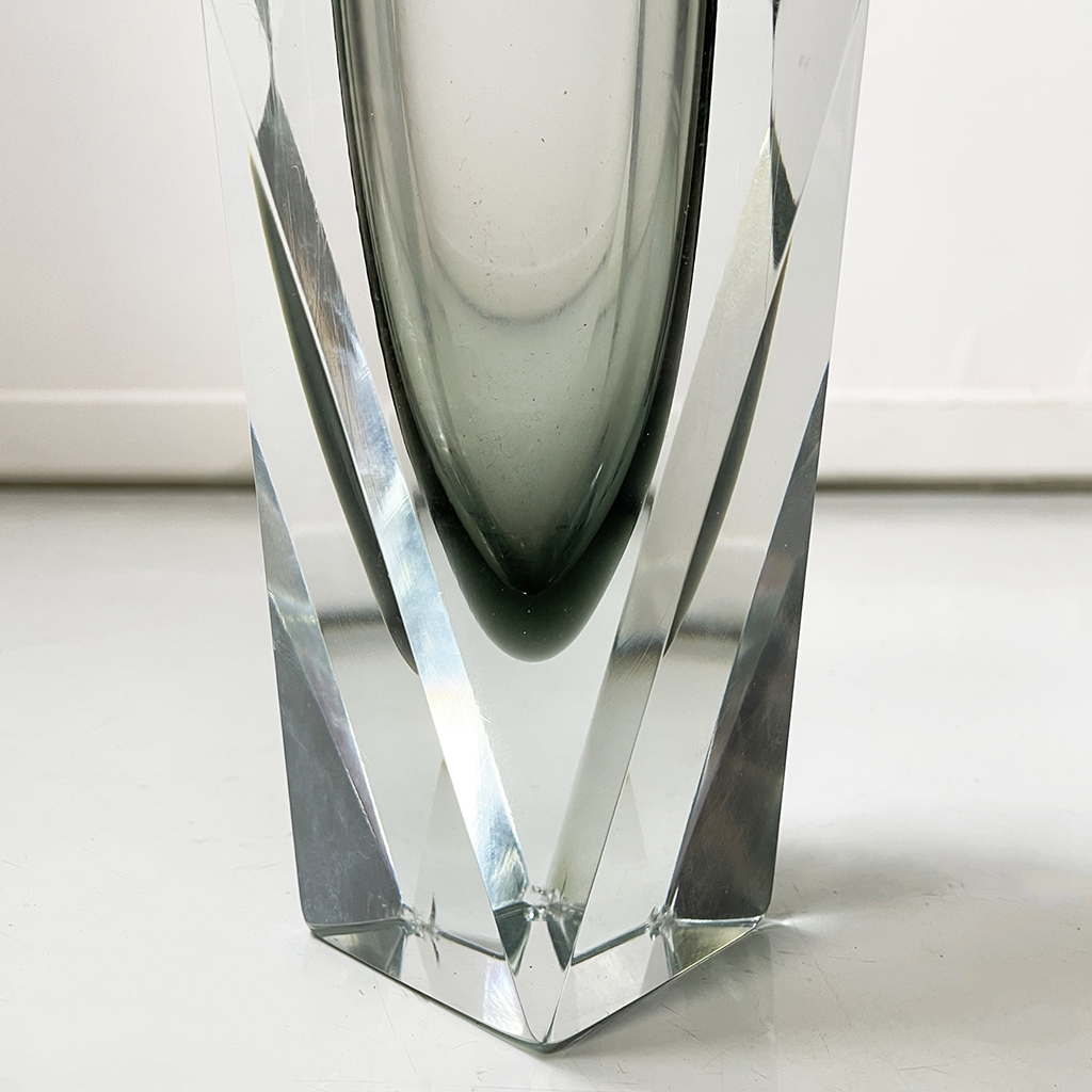 Vaso dalla forma irregolare in vetro Murano grigio.