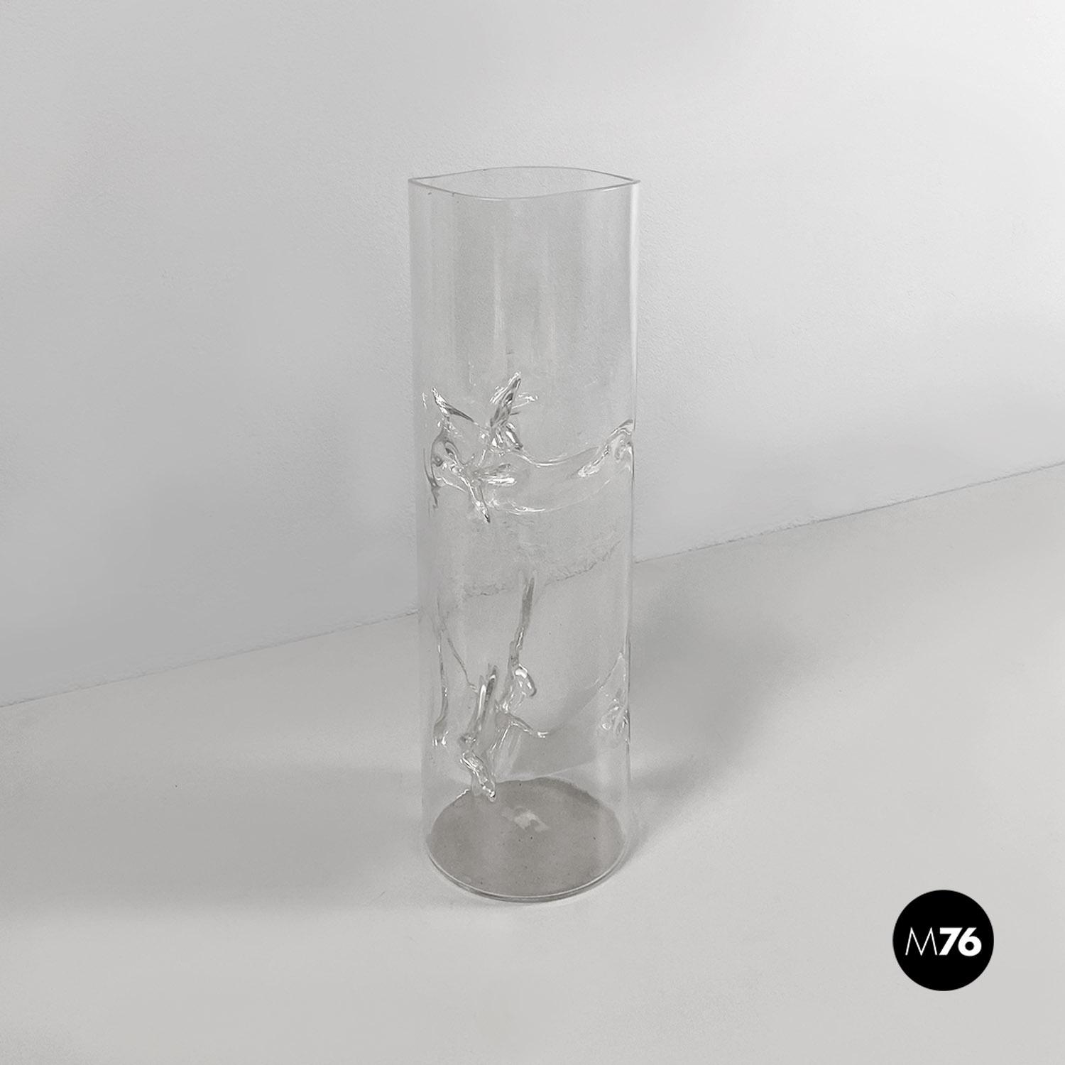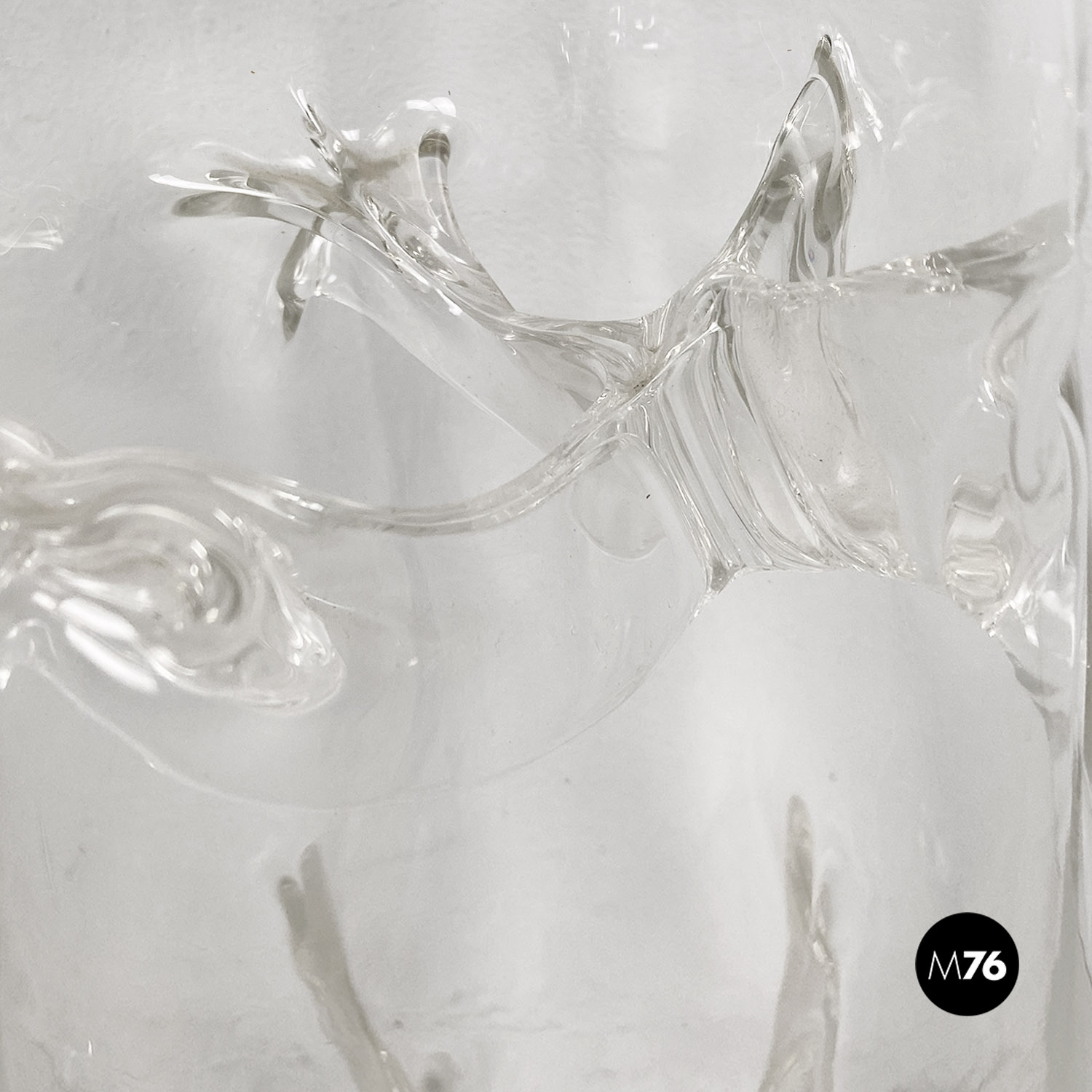 Vaso italiano modello Membrana in cristallo di Murano trasparente con fasce in cristallo all’interno. Disegnato da Toni Zuccheri e prodotto da VeArt nel 1970 ca.