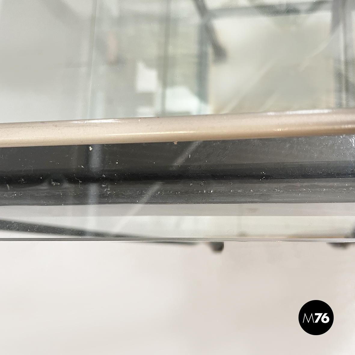 Discrete condizioni, leggeri segni sparsi al metallo e graffi al vetro. Ognuno dei due ripiani interni presentano un difetto.